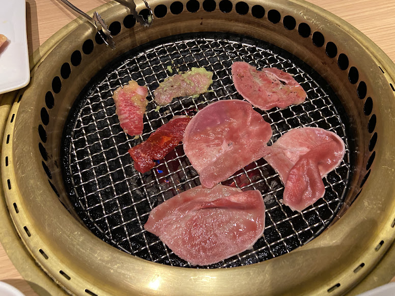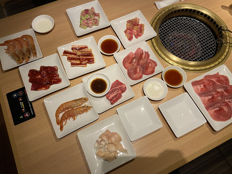 桌位空間都蠻大的,點很多東西都不怕,桌子都擺得下,這裡都是用送餐機器人來送餐,不過在日本吃燒肉,有個要注意的就是,他們的桌上通常都只會有一個爐子,如果人多一起來用餐,吃的量肯定會受烤爐大小而影響。
