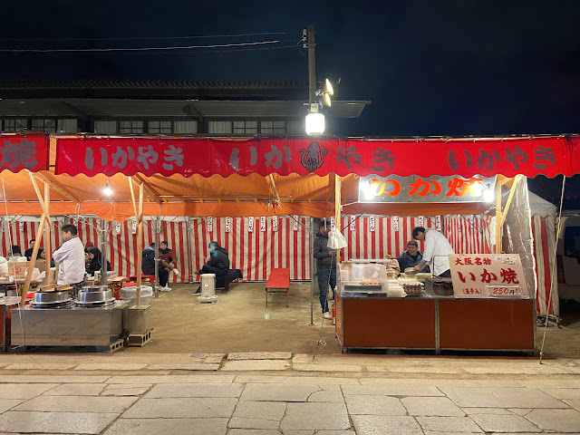 在鳥居至西大門之間的通道,這裡有擺著一些小攤位販售小吃這邊也打破我對廟會的印象,即使是販售食物的攤位,也是安靜異常,現場除了烹煮跟顧客點餐的聲音外,就沒什麼其他聲響了。